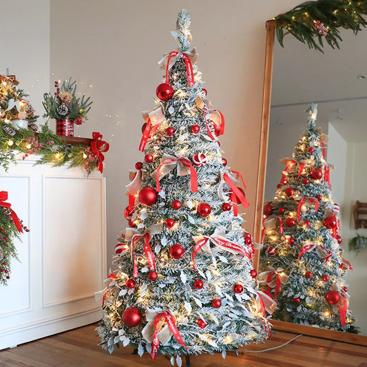 5/6/7/8 Feet Pre-installed Light Flocked Artificial Christmas Tree RGB Fully Pre-installed Light Christmas Tree Snow Flocked