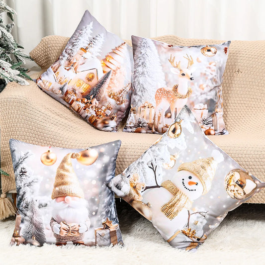 Christmas Cushion Covers Four-piece Set Festive Atmosphere Suitable for Parties Holidays and Daily Decoration