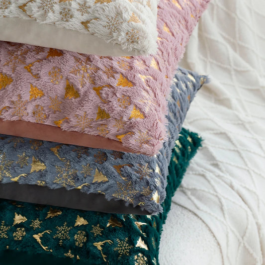 Christmas Cushion Cover 43x43cm Plush Fur Snowflake Print Cushion Covers Decorative Pillow Cover for Sofa Livingroom Home Decor