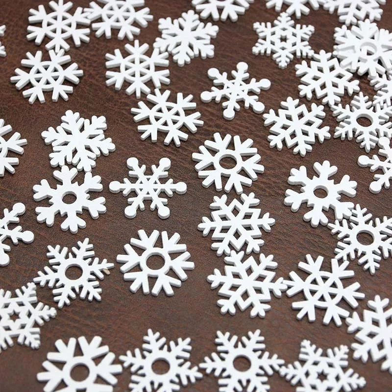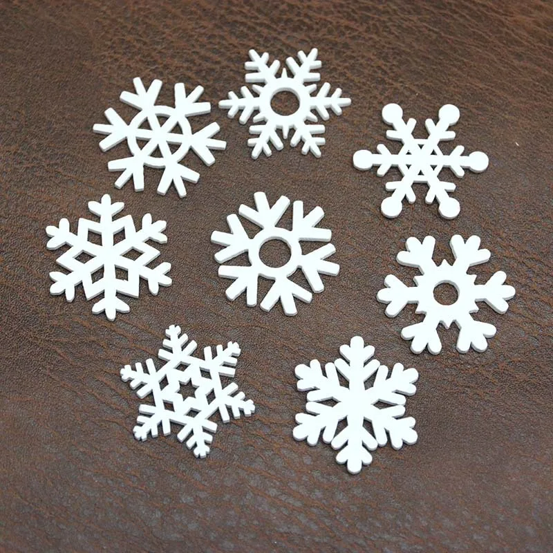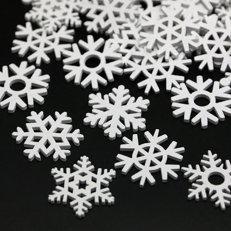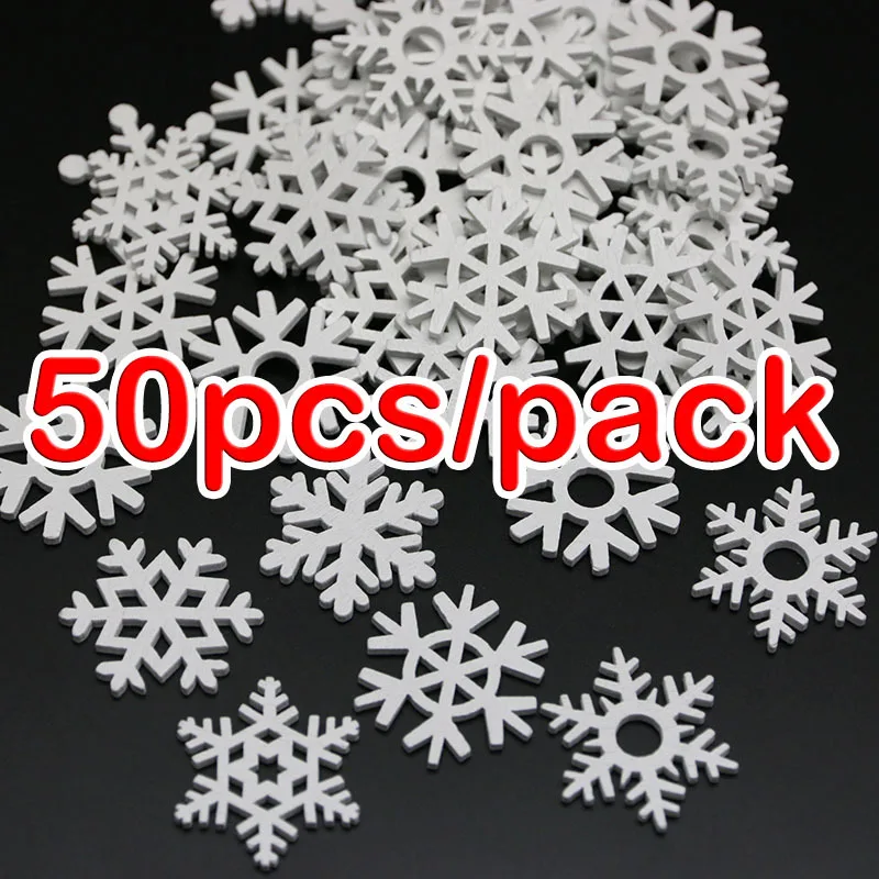 35mm White Wooden Snowflakes Mix Shape Christmas Ornaments Tree Pendants New Year Home Decorations 50pcs/pack