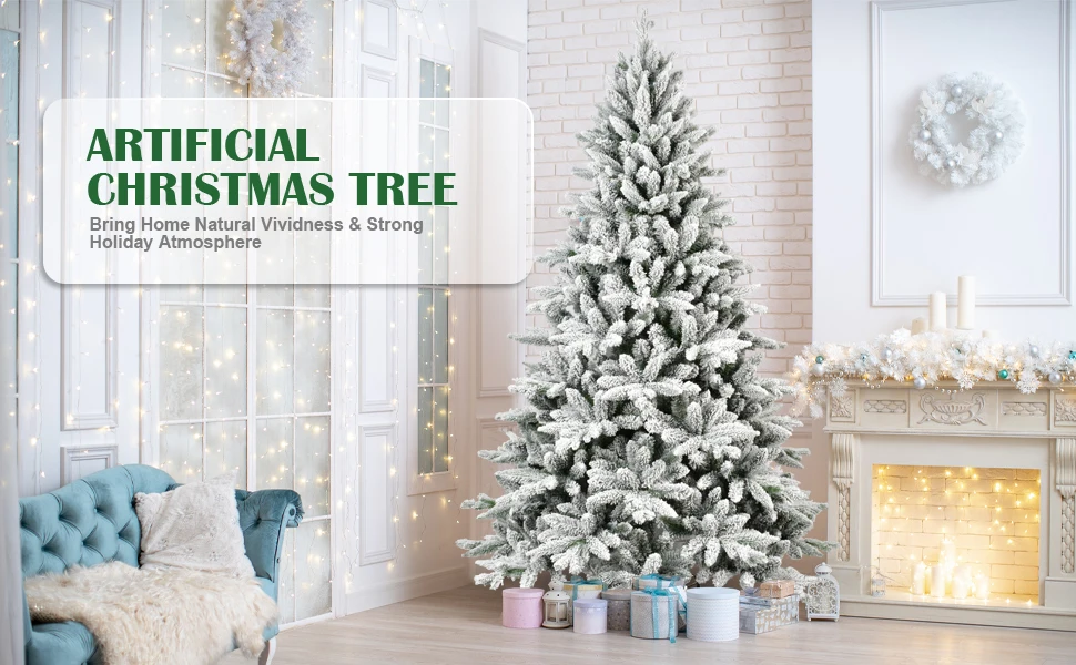 5/6/7ft Best Flocked Artificial Christmas Tree Artificial Hinged Christmas Tree for Holiday Party Office Home Living