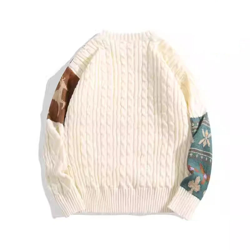 Vintage Christmas Sweater Men's Clothing Knitwear 2024 Winter American Thick Loose Sweater Pullovers New Japanese Splice Jumpers